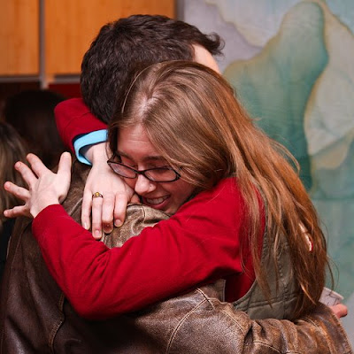 Stars Jake and Ingrid of our fall production The Lesser Seductions of History are happy to see each other…