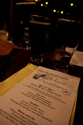 Why is this line up a must see? Because Have Another gives you a chance to see the plays that Flux is developing at Flux Sundays, all the while tipping back a beer or two and enjoying Jimmy’s great locally inspired food (local theatre pairs well with local food, no?) It’s one of our ways of sharing our development process with you.